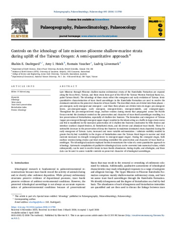 Dashtgard, Shahin E., Hsieh, Amy I., Vaucher, Romain, and Löwemark, Ludvig (2026) Controls on the ichnology of late miocene–pliocene shallow-marine strata during uplift of the Taiwan Orogen: A semi-quantitative approach. Palaeogeography, Palaeoclimatology, Palaeoecology, 692. 113780.