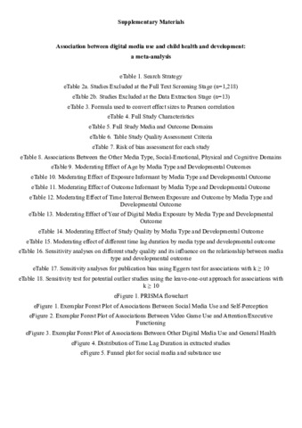 Objective To provide a meta-analytic synthesis of evidence on digital media use and health and developmental outcomes among individuals aged 0 to 18 years.